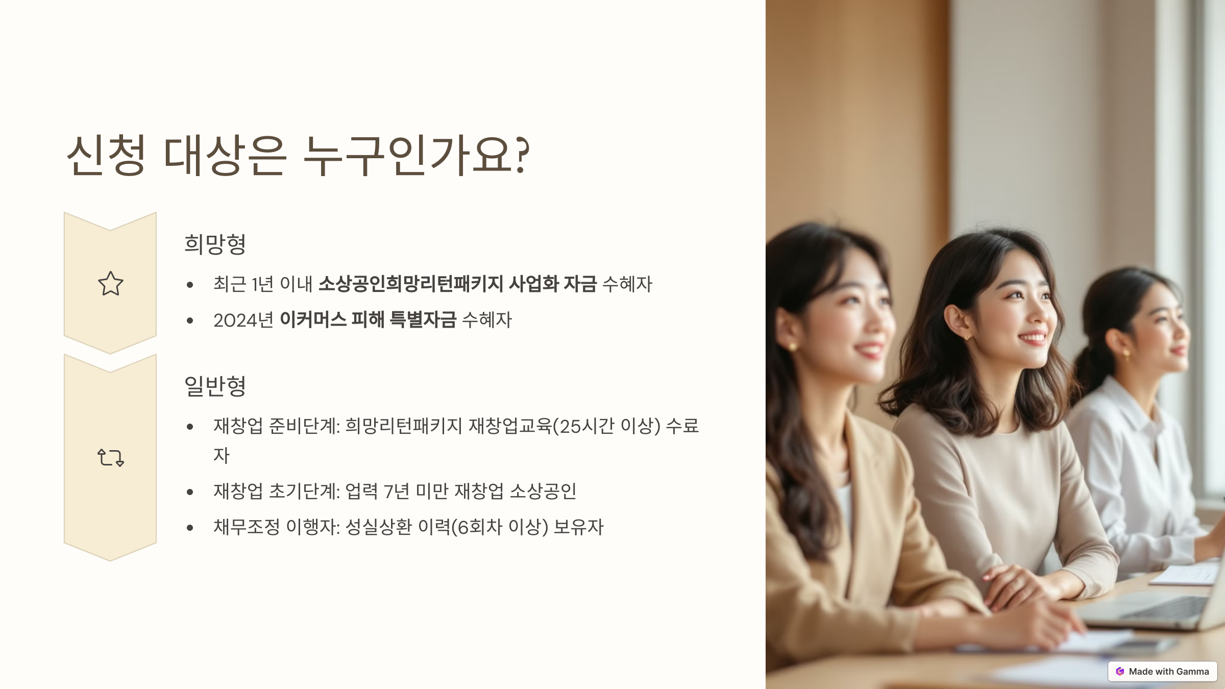 - 희망형: 기존에 정부의 회복 지원 사업 또는 이커머스 피해 특별자금을 받은 소상공인 대상