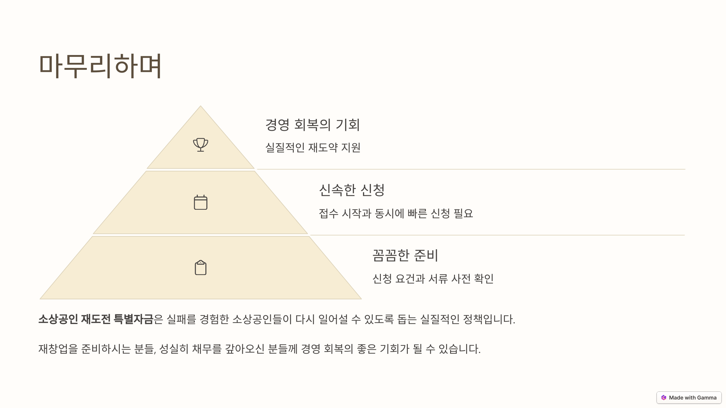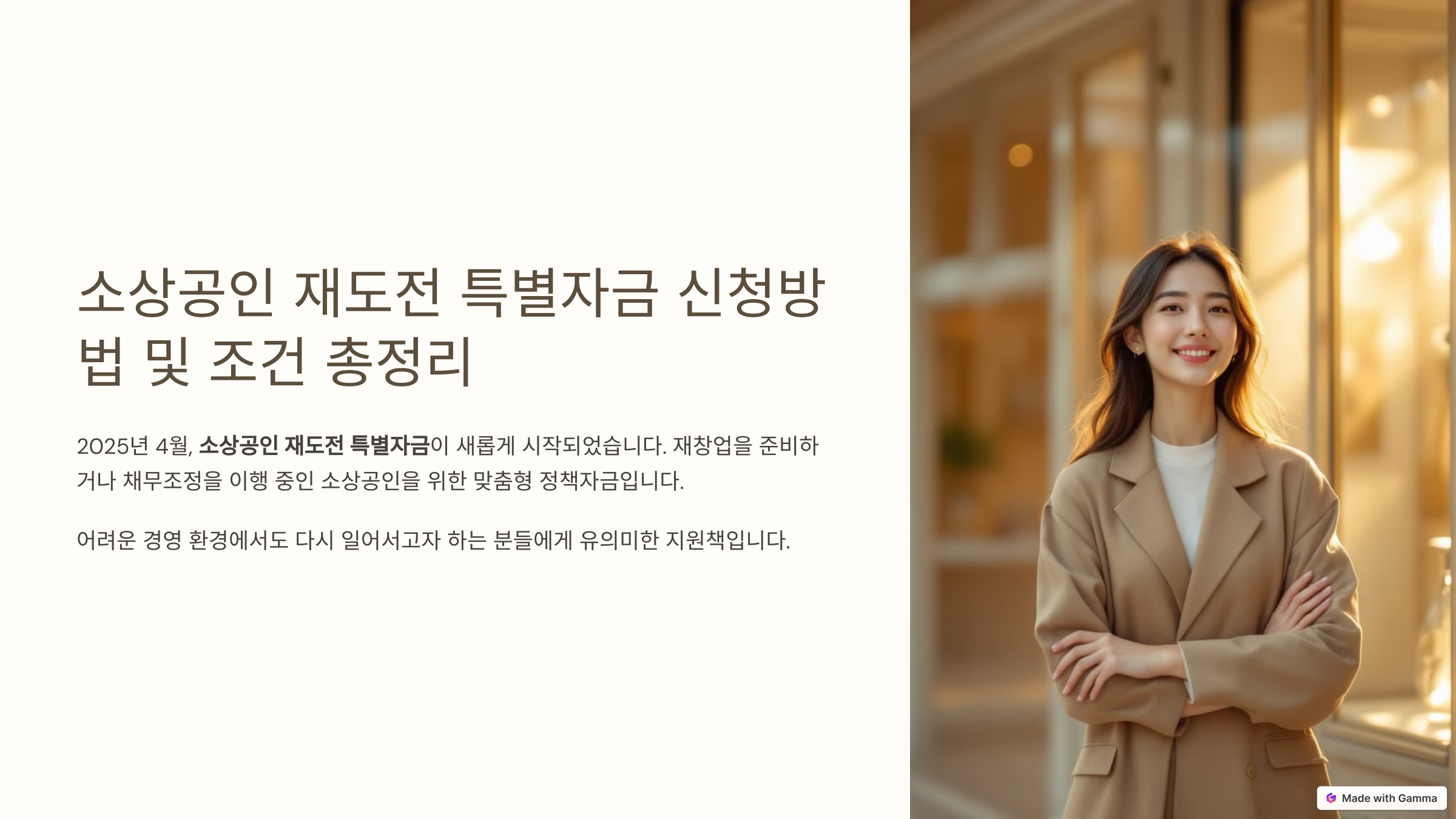 소상공인 재도전 특별자금은 이름 그대로, 실패를 경험한 소상공인들이 다시 일어설 수 있도록 돕는 매우 실질적인 정책입니다. 재창업을 준비하시는 분들, 성실히 채무를 갚아오신 분들께는 경영 회복의 좋은 기회가 될 수 있습니다.