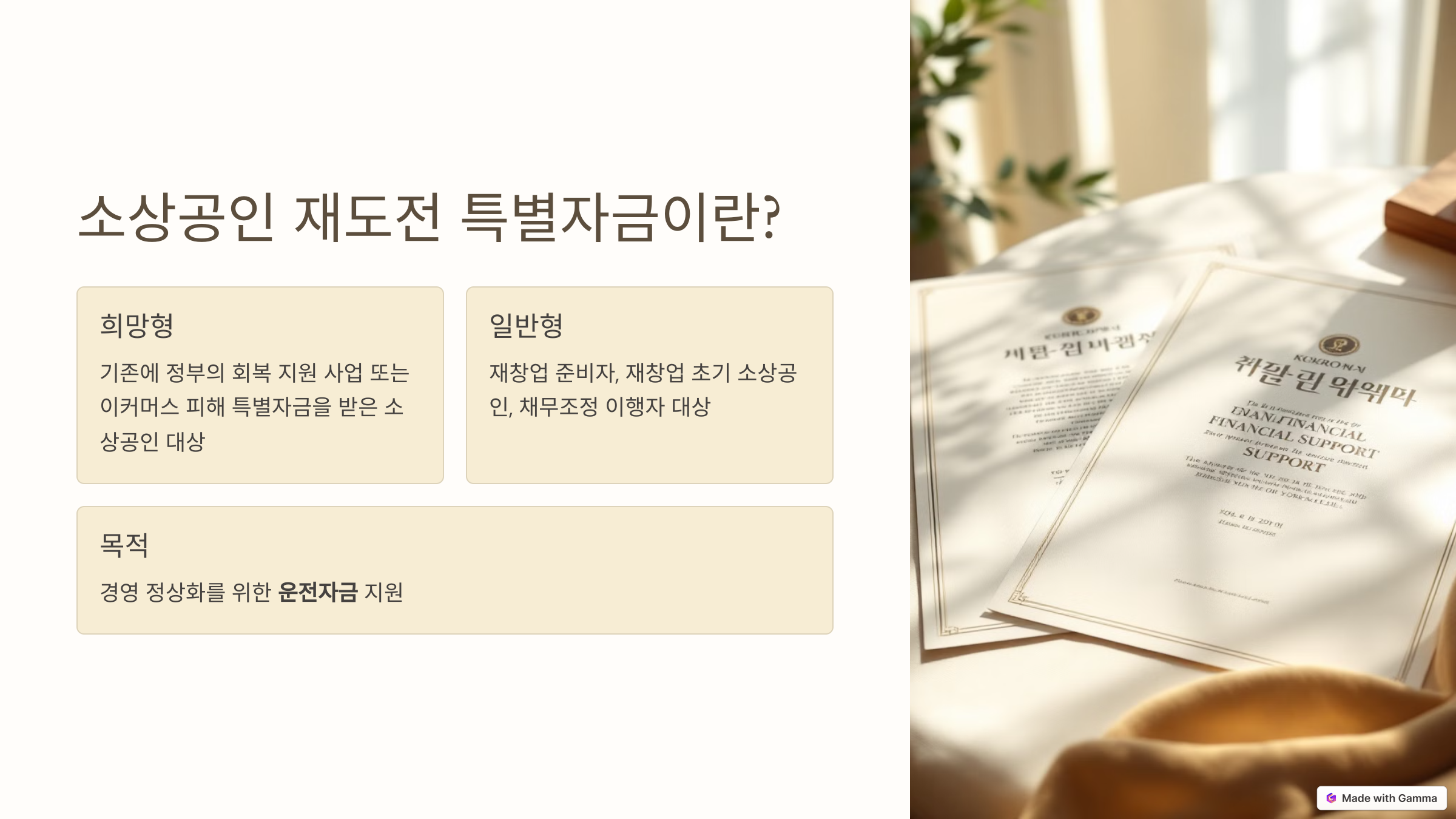소상공인 재도전 특별자금은 크게 두 가지 유형으로 나뉩니다.