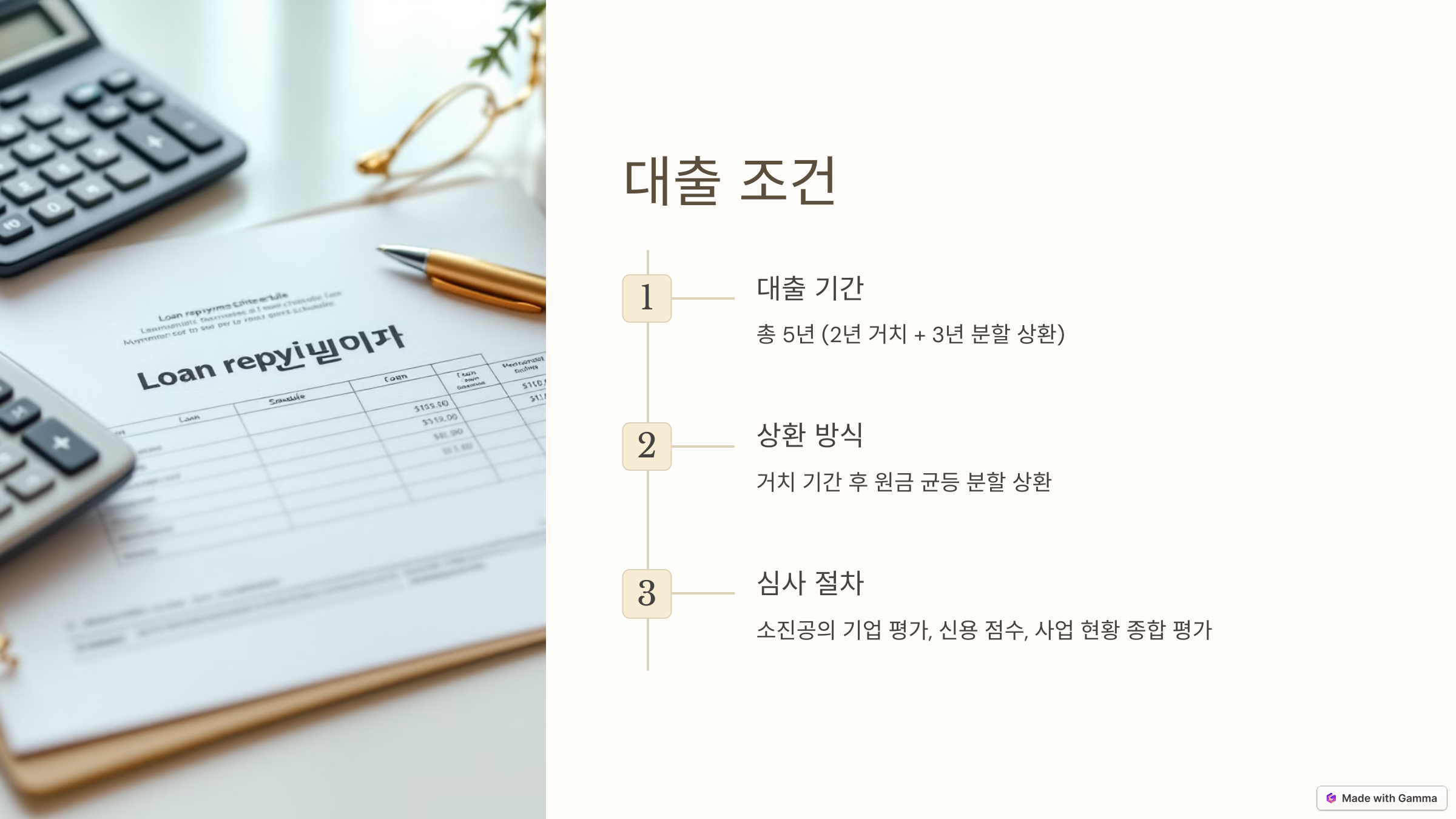 - 대출 기간: 총 5년 (2년 거치 + 3년 분할 상환)
